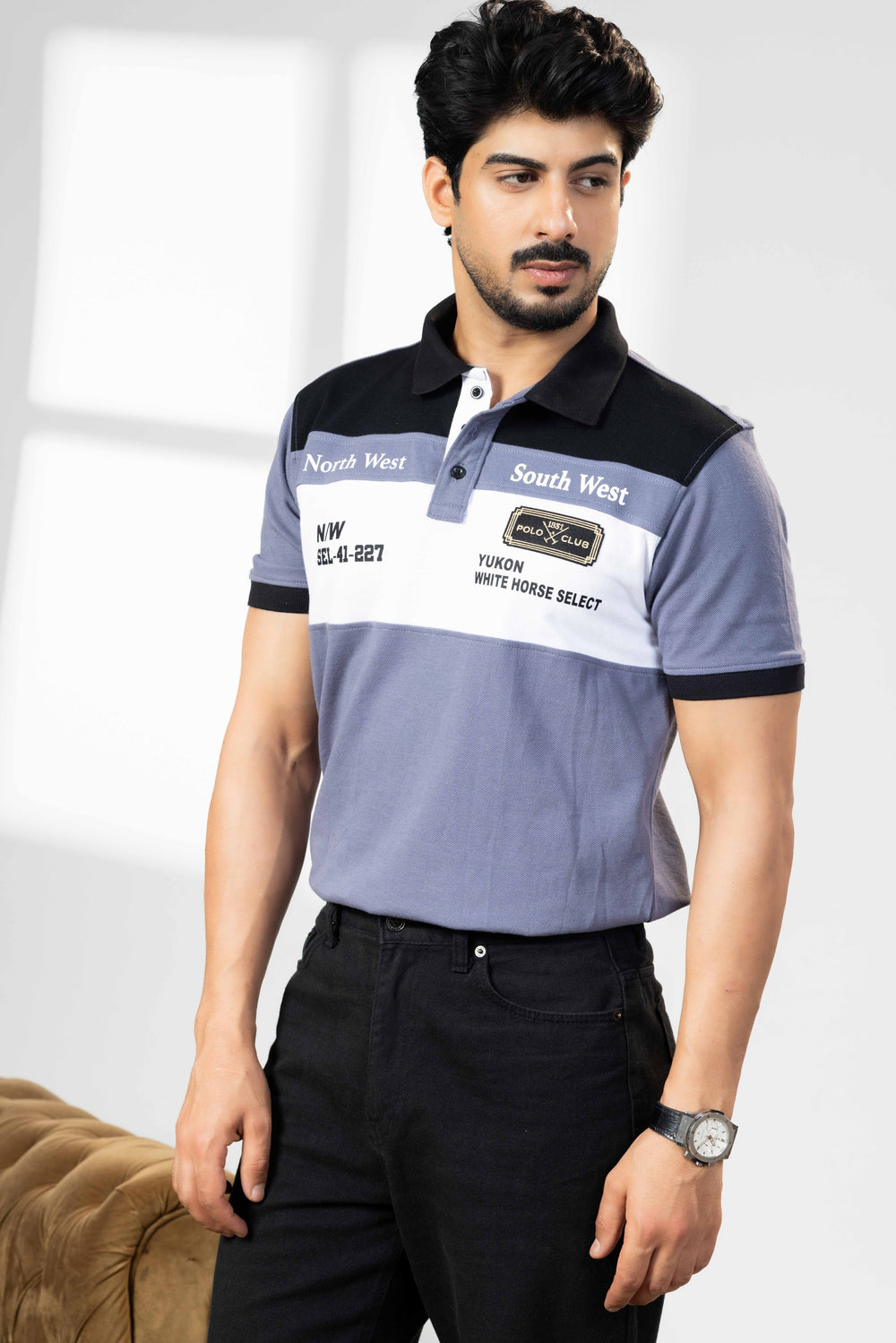 Black/Blue Cotton Half Sleeve Printed Polo T Shirt with Collar