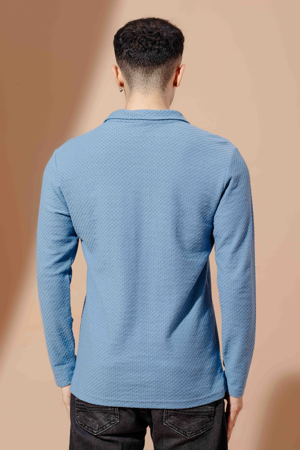 This regular fit collar neck t-shirt from Gritstones is made in 100% cotton fabric and comes with unique self design pattern. Featuring full sleeves and polo collar, it combines style and comfort effortlessly. Perfect for smart casual and streetwear looks, it's a must have for the fashion-forward men.