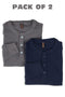 Black & Grey Melange Self Waffle Knit Pack of 2 combo Henley T-Shirt