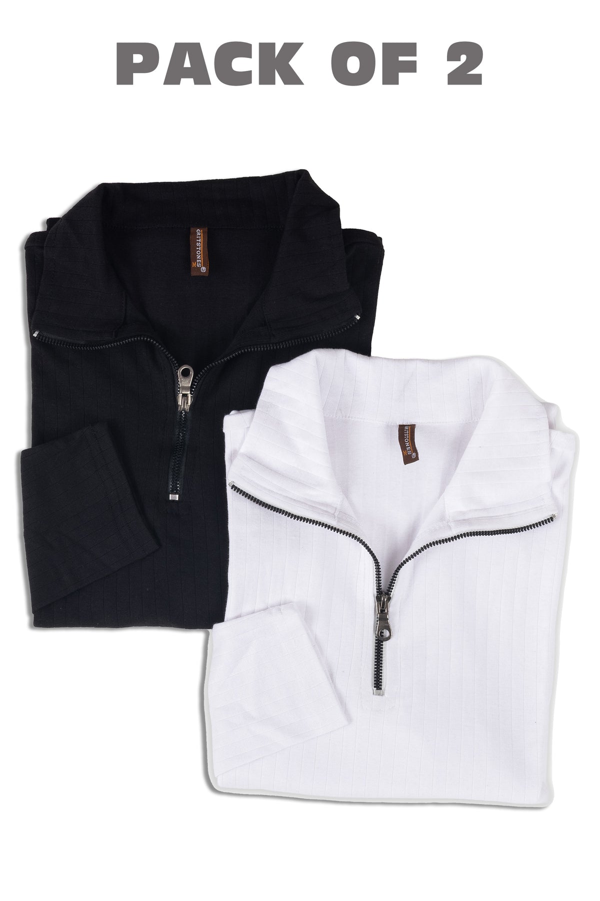 Black & White Self Design pack of 2 combo Zipper T-Shirt
