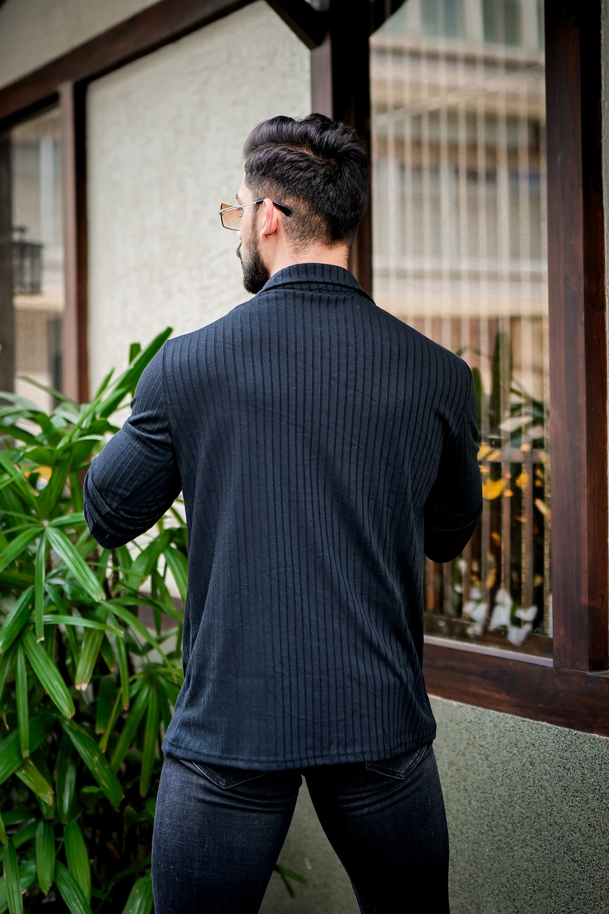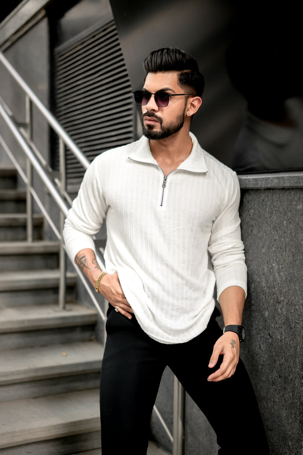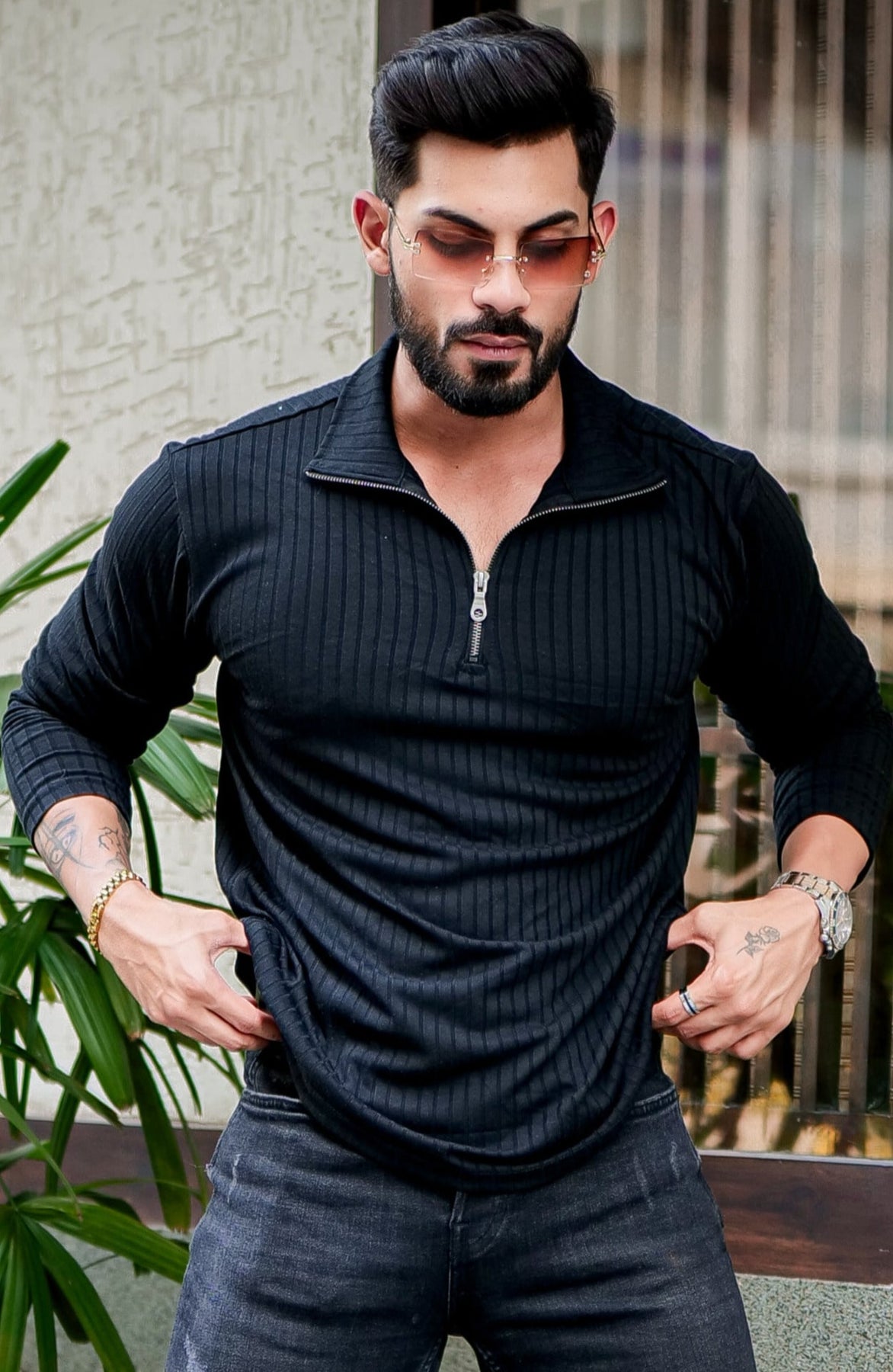This regular fit zipper neck t-shirt from Gritstones is made in 100% drop needle fabric and comes with unique self pattern. Featuring full sleeves and zipper neck, it combines style and comfort effortlessly. Perfect for smart casual and streetwear looks, it's a must have for the fashion-forward men.