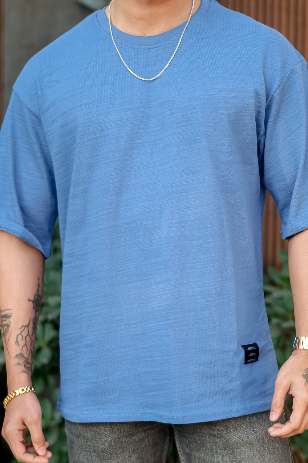 This oversized fit t-shirt from Gritstones is made in 100% cotton fabric and comes with unique dark blue solid pattern. Featuring half sleeves and round neck, it combines style and comfort effortlessly. Perfect for smart casual and streetwear looks, it's a must have for the fashion-forward men.