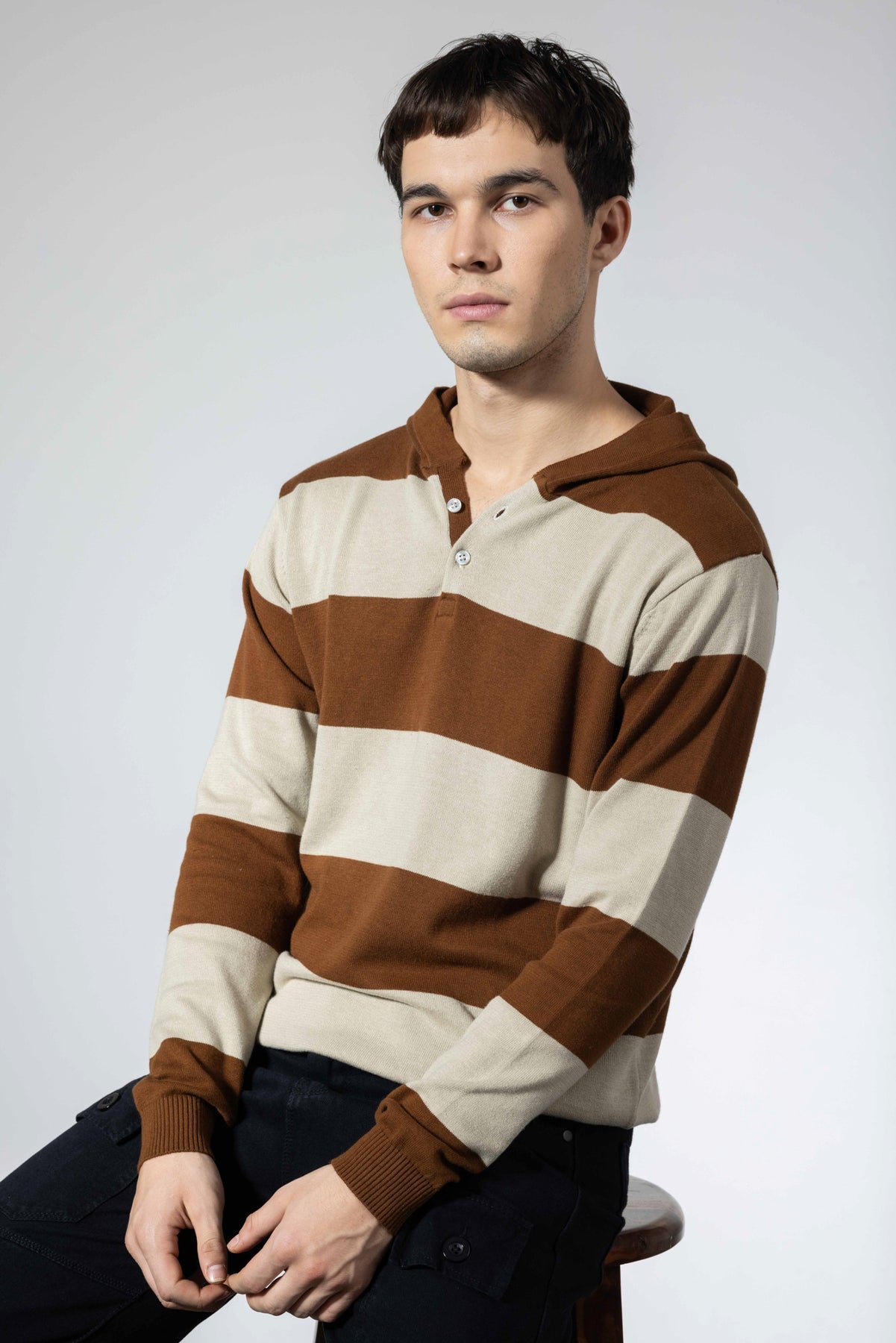 This regular fit hooded neck t-shirt from Gritstones is made in 100% cotton fabric and comes with unique colorblocked pattern. Featuring full sleeves and hooded neck, it combines style and comfort effortlessly. Perfect for smart casual and streetwear looks, it's a must have for the fashion-forward men.
