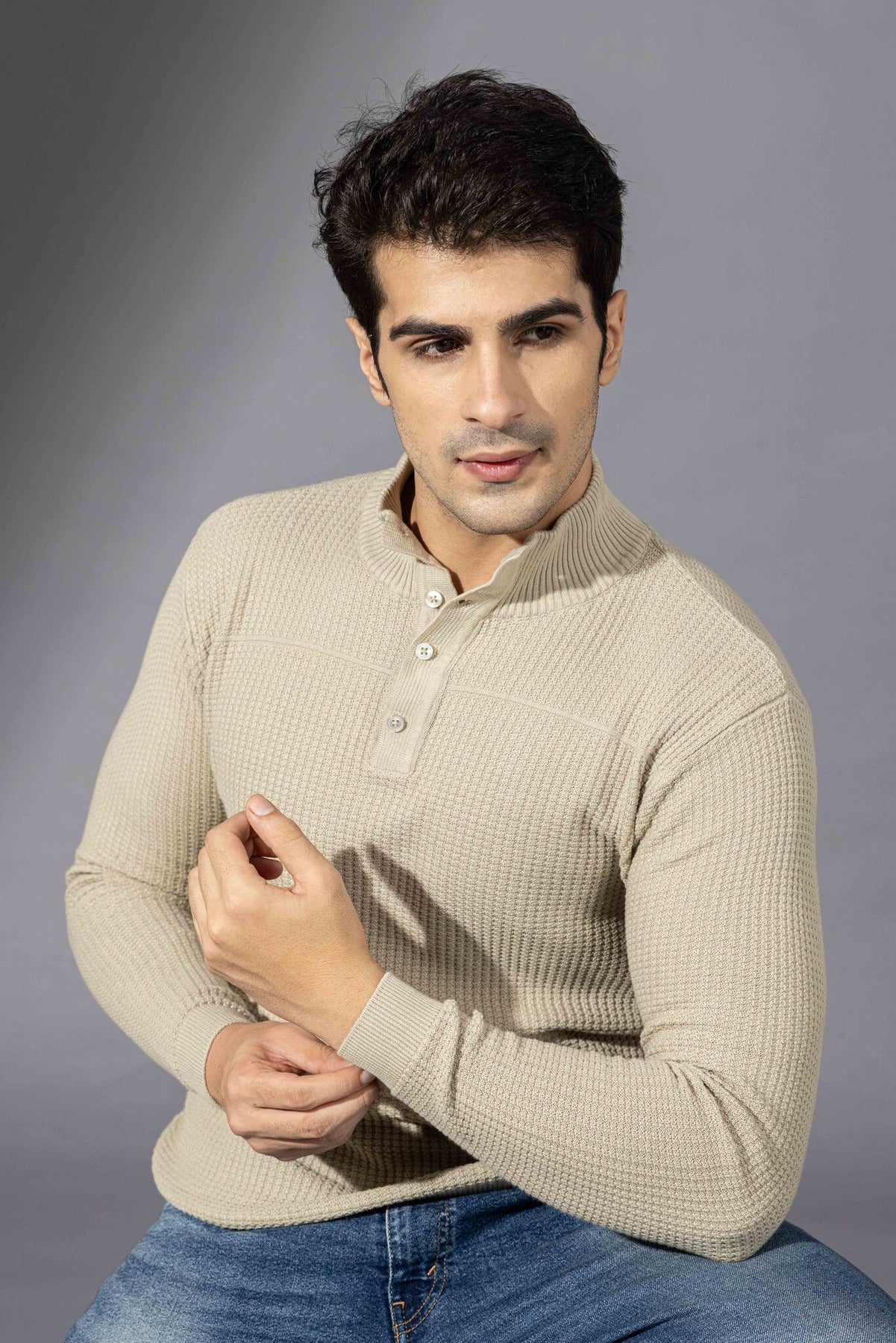This regular fit polo neck t-shirt from Gritstones is made in 100% cotton fabric and comes with unique self pattern. Featuring full sleeves and polo neck, it combines style and comfort effortlessly. Perfect for smart casual and streetwear looks, it's a must have for the fashion-forward men.