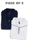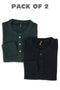 Grey & Navy Self Waffle Knit Pack of 2 combo Henley T-Shirt