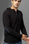 This regular fit hooded neck t-shirt from Gritstones is made in 100% cotton ottoman fabric and comes with unique self pattern. Featuring full sleeves and hooded neck, it combines style and comfort effortlessly. Perfect for smart casual and streetwear looks, it's a must have for the fashion-forward men.