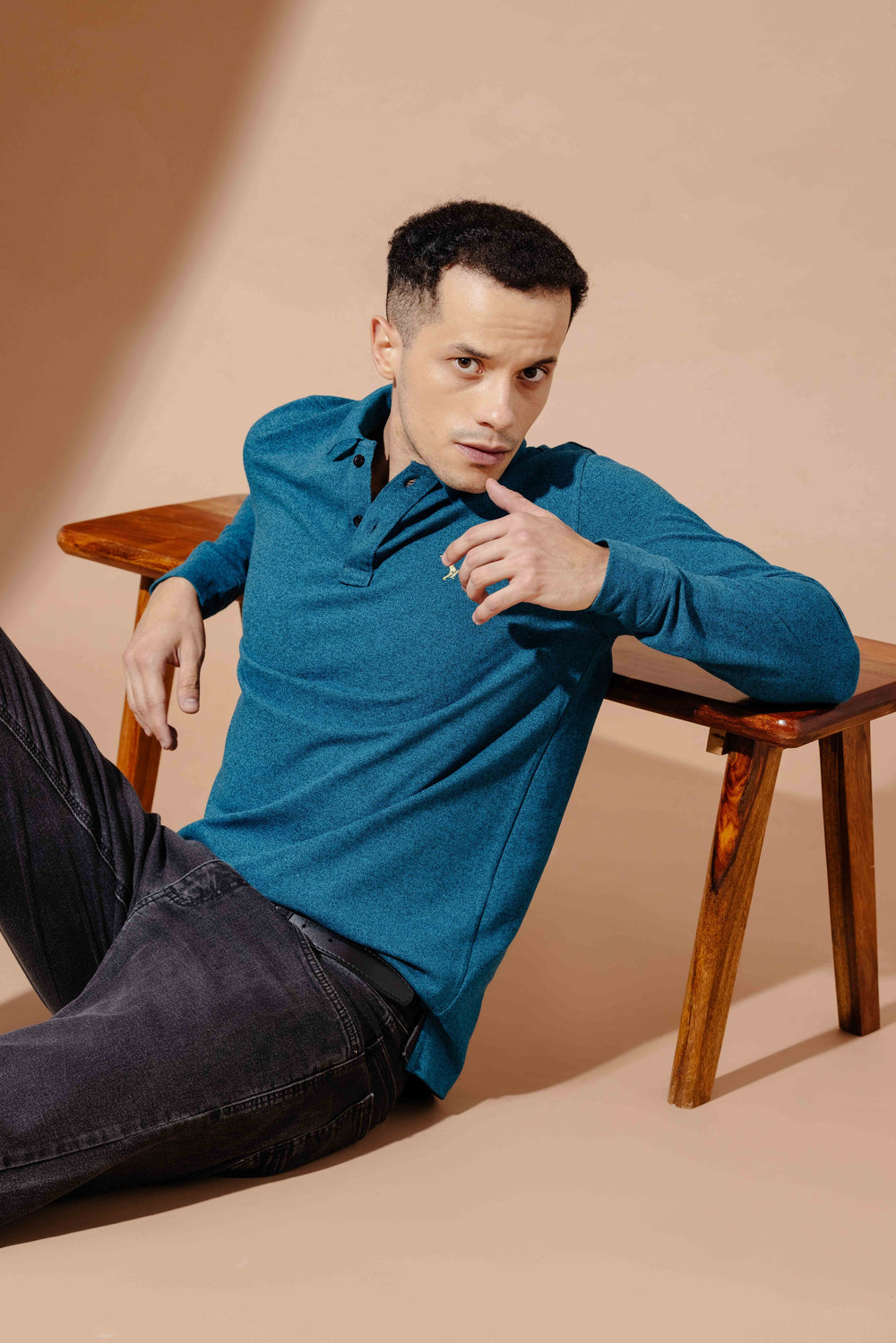 This regular fit polo neck t-shirt from Gritstones is made in 100% matty cotton fabric and comes with unique embroidery pattern. Featuring full sleeves and polo neck, it combines style and comfort effortlessly. Perfect for smart casual and streetwear looks, it's a must have for the fashion-forward men.
