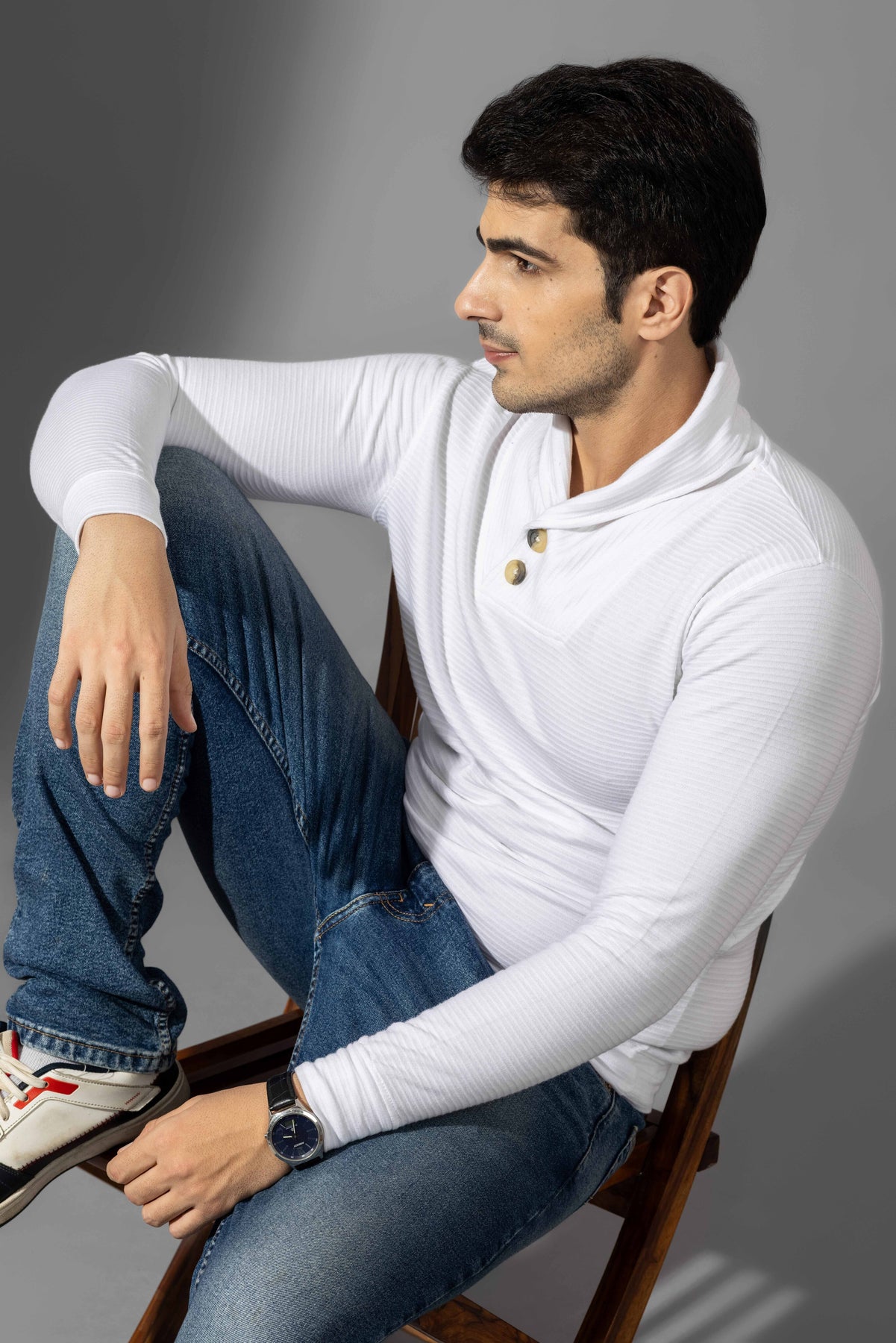 This regular fit cowl neck t-shirt from Gritstones is made in 100% cotton ottoman fabric and comes with unique self pattern. Featuring full sleeves and cowl neck, it combines style and comfort effortlessly. Perfect for smart casual and streetwear looks, it's a must have for the fashion-forward men.
