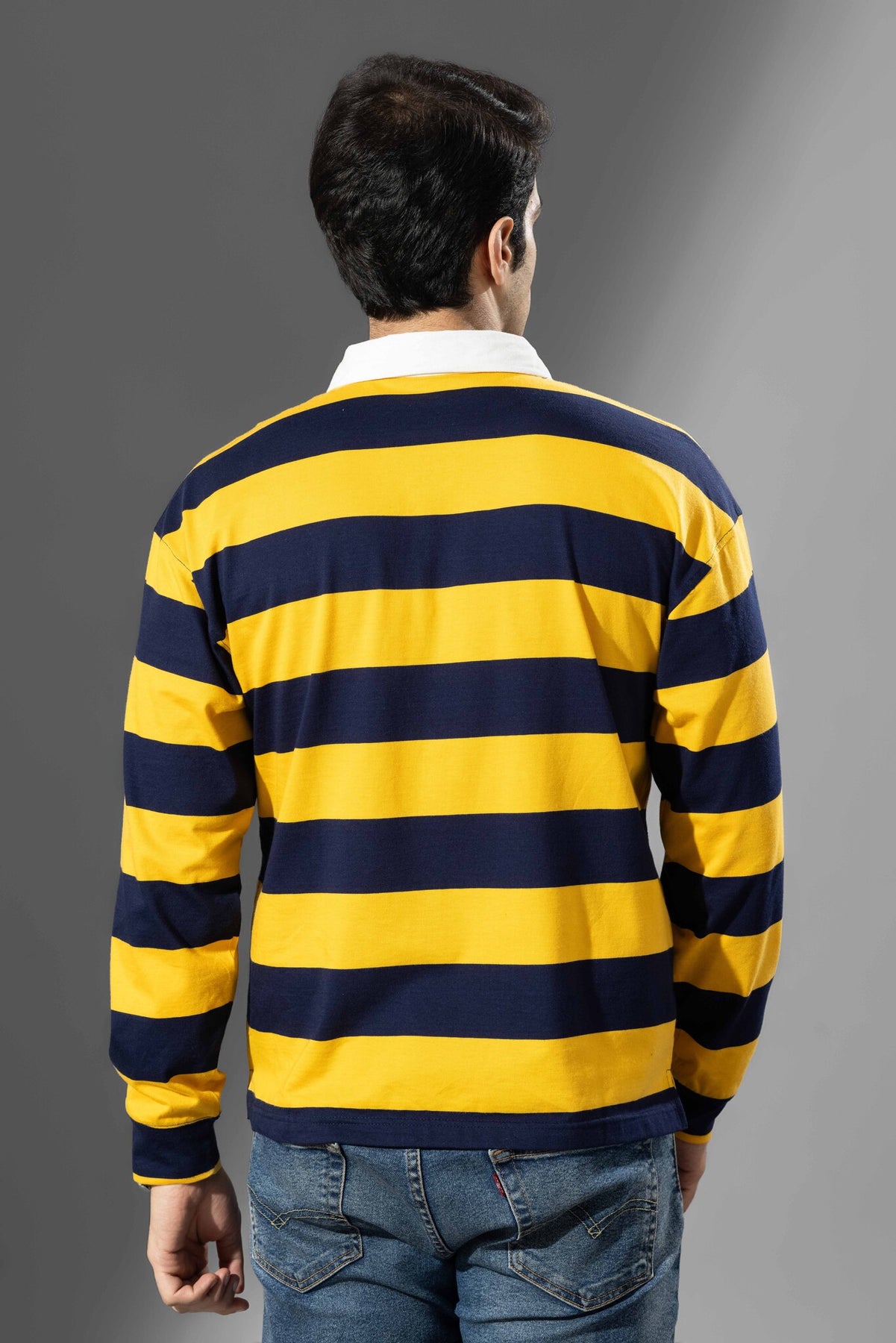 Yellow Navy Full Sleeve ColorBlock Polo T-Shirt